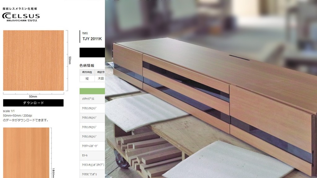 こちらも時間が無く最終的にメーカーにあった在庫品を選定しましたが、結果良好。室内との調和が取れており、表面に傷が付きにくい、猫が引っ掻けないものでした。下記リンクに使用した表面のメラミンは「aDDspectTJ-719K」。