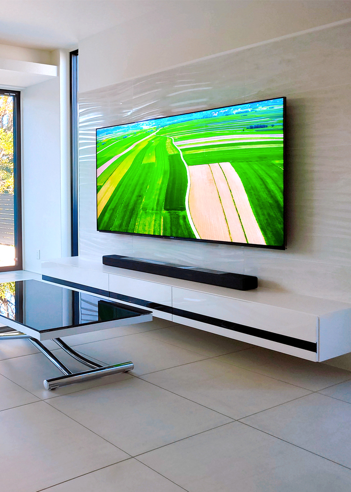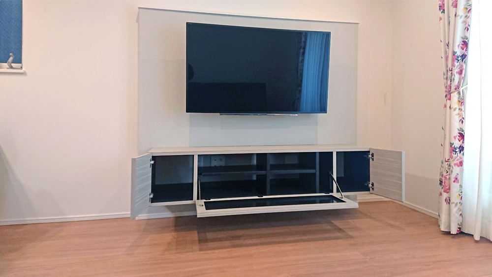 強度と通気性に優れたフロートテレビボードはシアタールームに最適