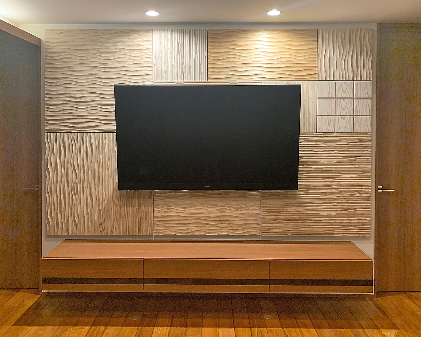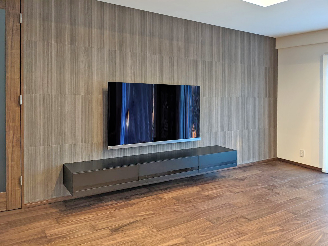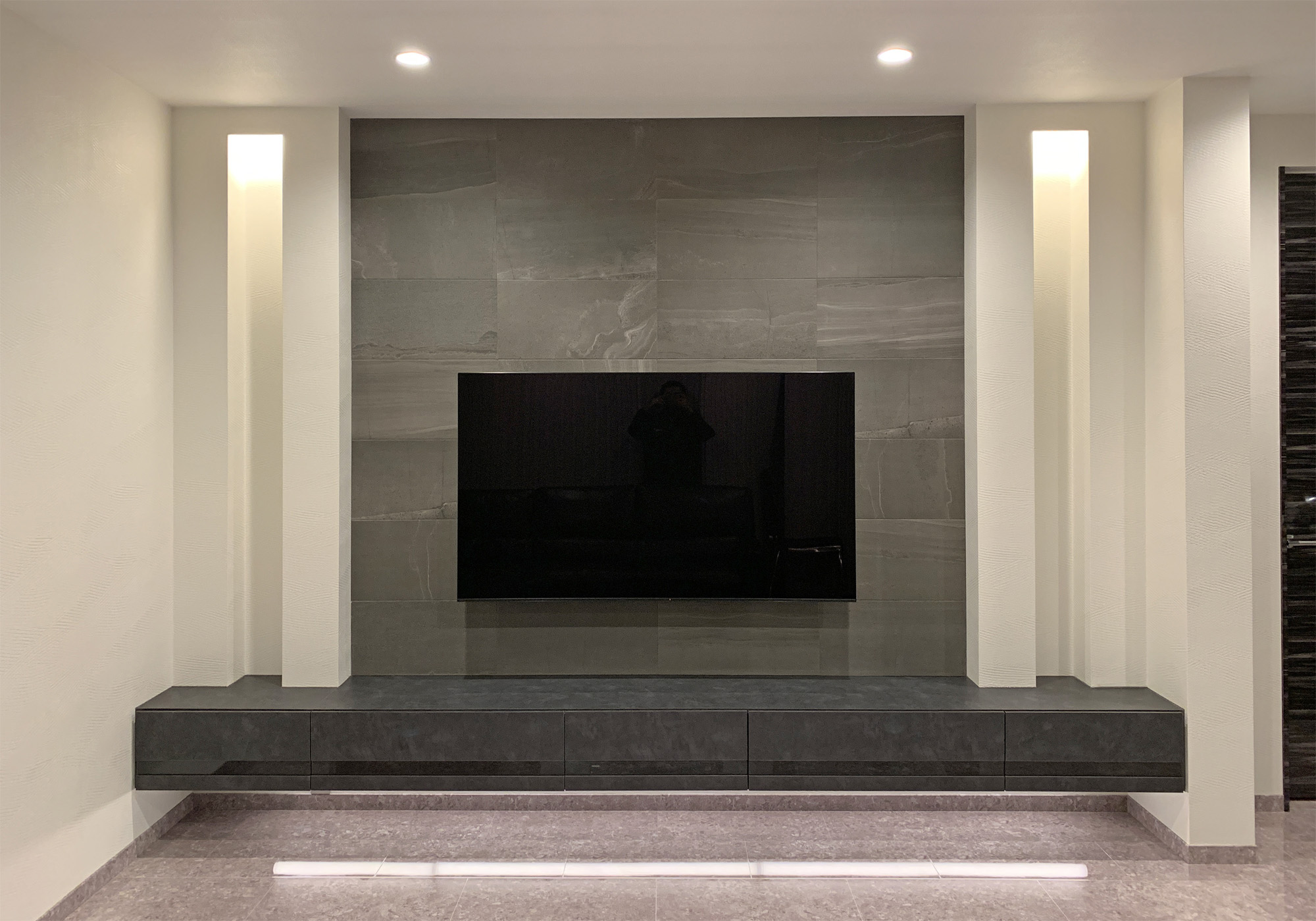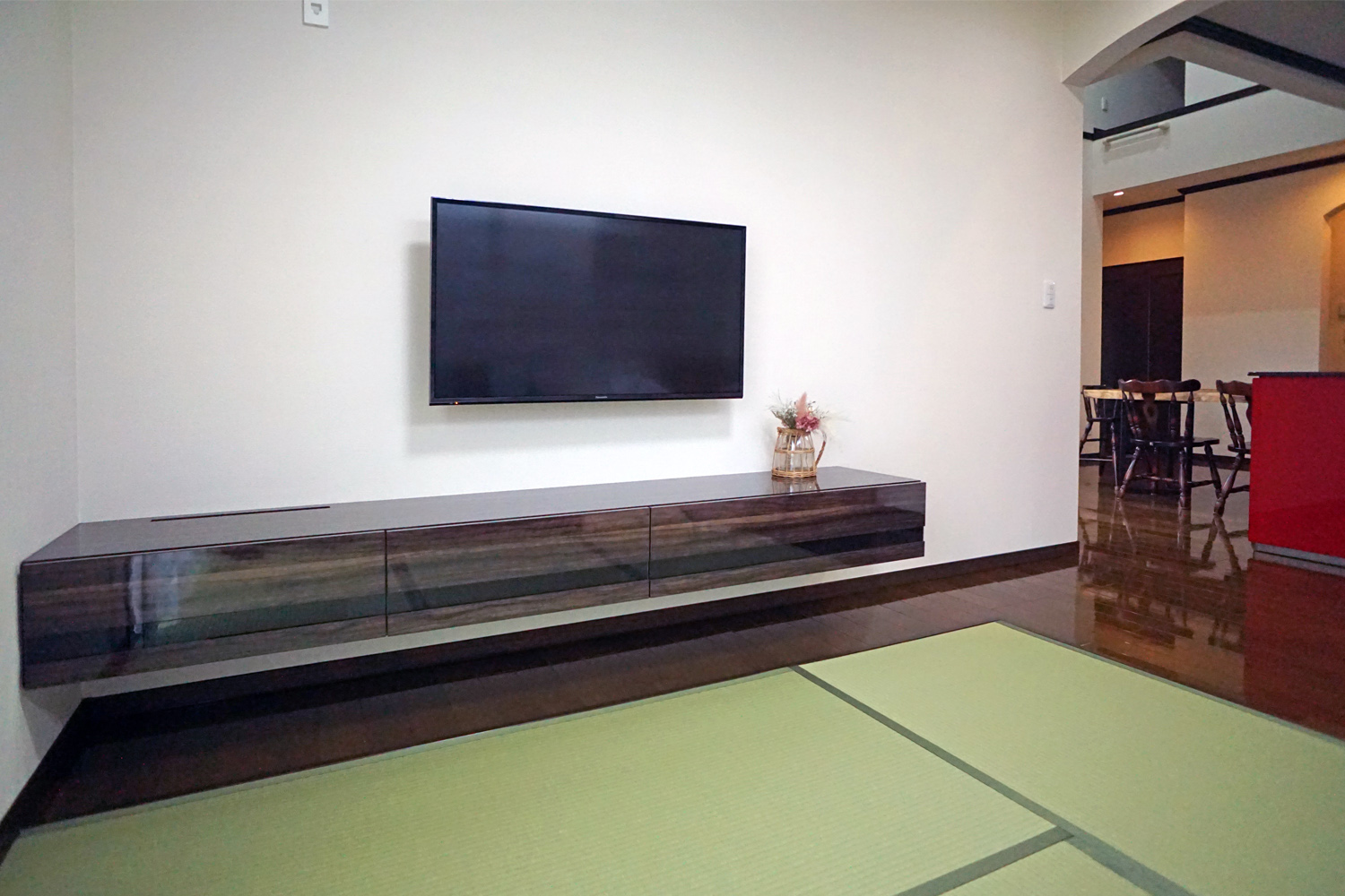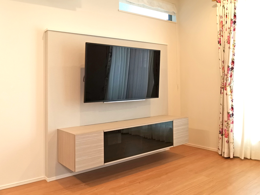 工務店の無責任なやりとりのおかげで家が完成後にテレビボード の施工になってしまいましたが、かえって綿密に直接打ち合わせができて満足しております。