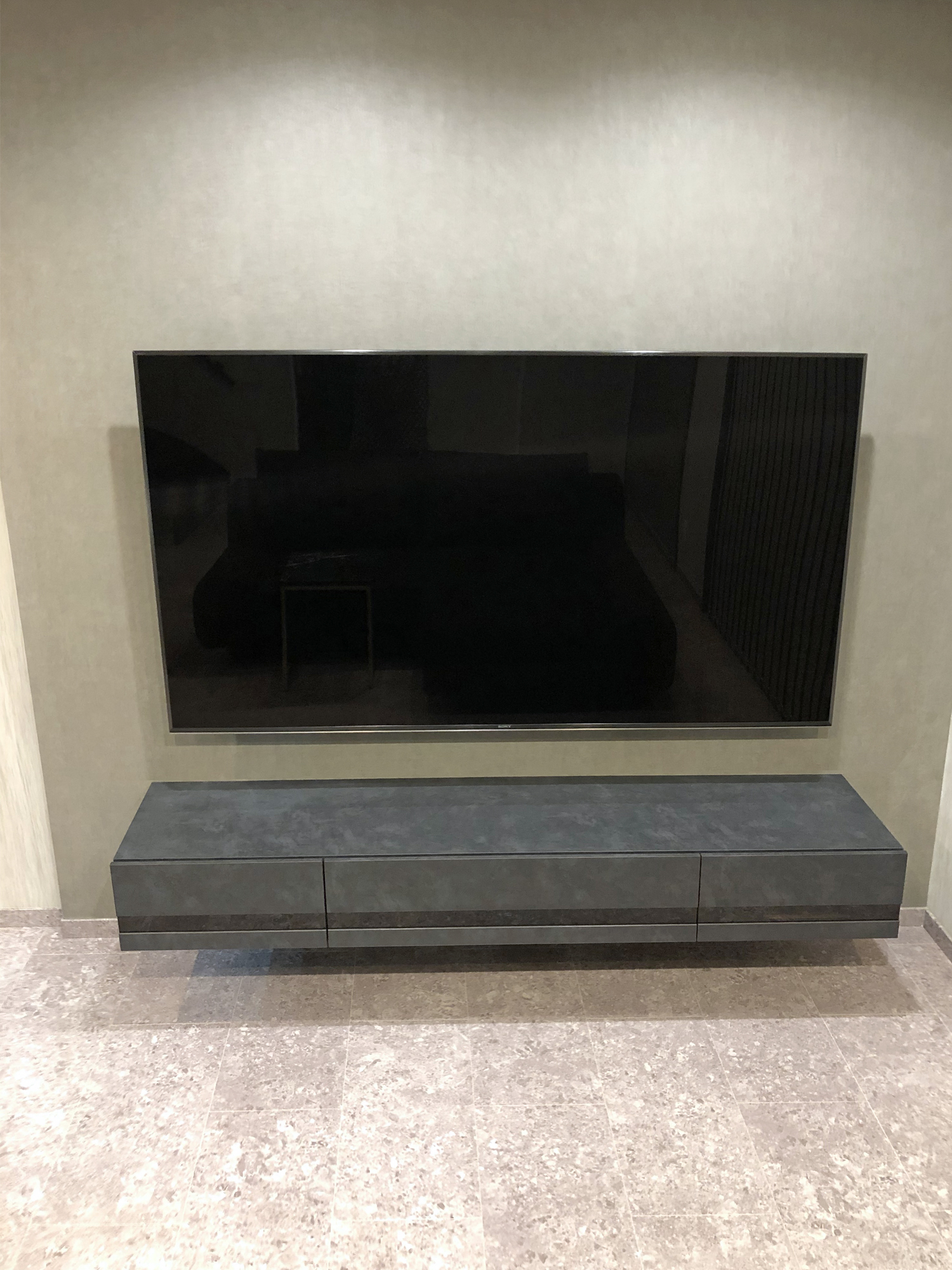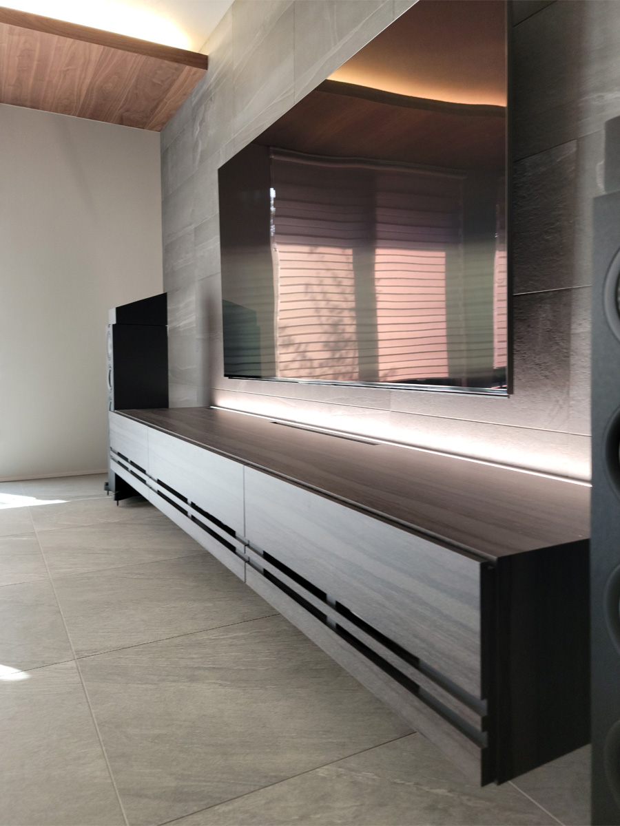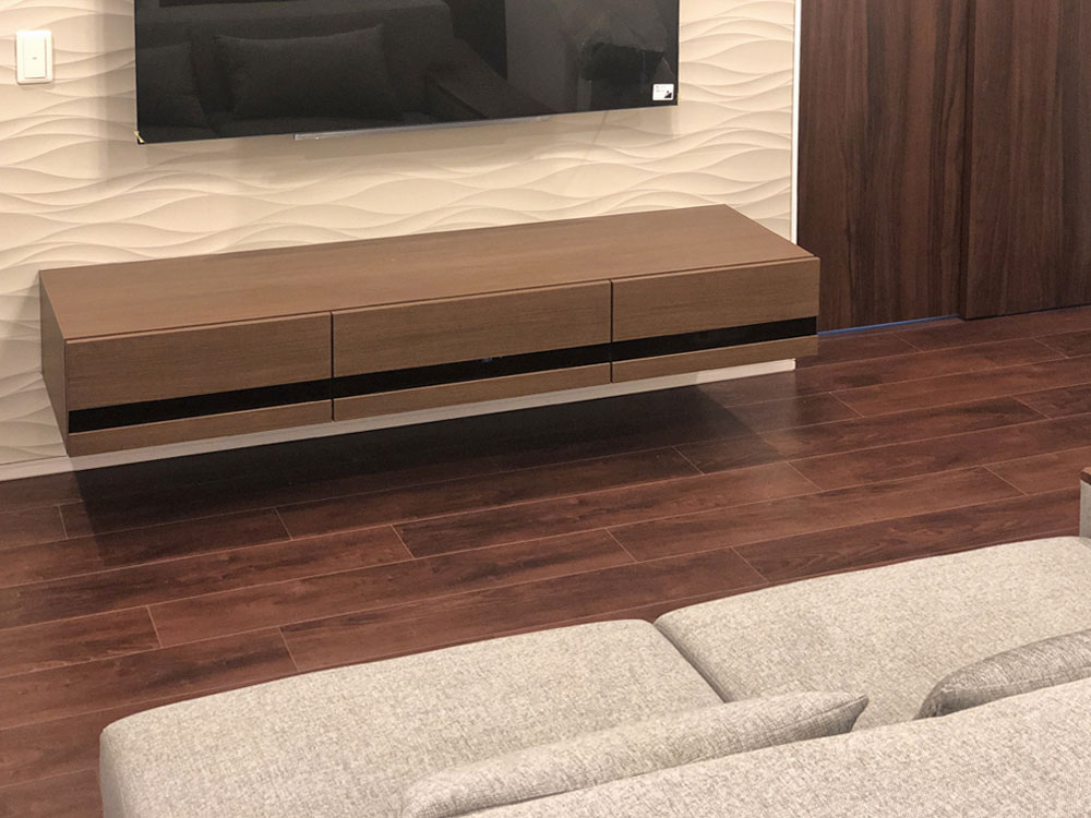 “リビング用にフロートタイプのテレビボードを依頼しました。シンプルかつ洗練されたデザインでありながら、収納容量の多さ等使い勝手も良く大変満足しています。