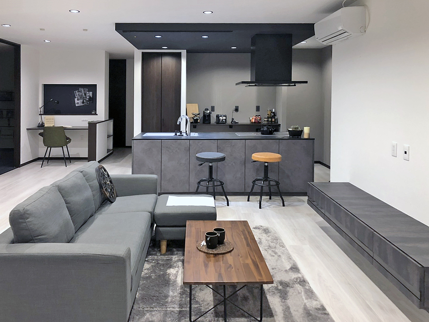 “垂直面の光沢ある素材がテーブルや間接照明とマッチしているように思います。こちらの素材にしていただいて正解でした!