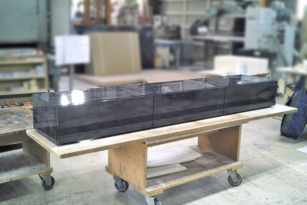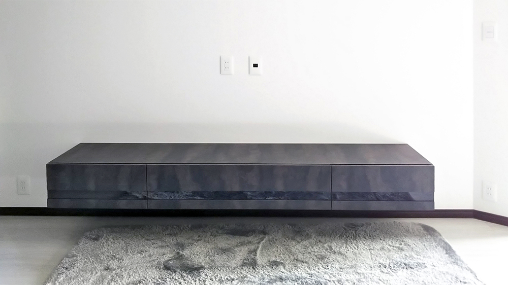 オーダー家具は作る職人の技術力によって品質が変わります。このフロートテレビボードのシンプルデザインは提携工場のトップレベルの技術力で支えられています。