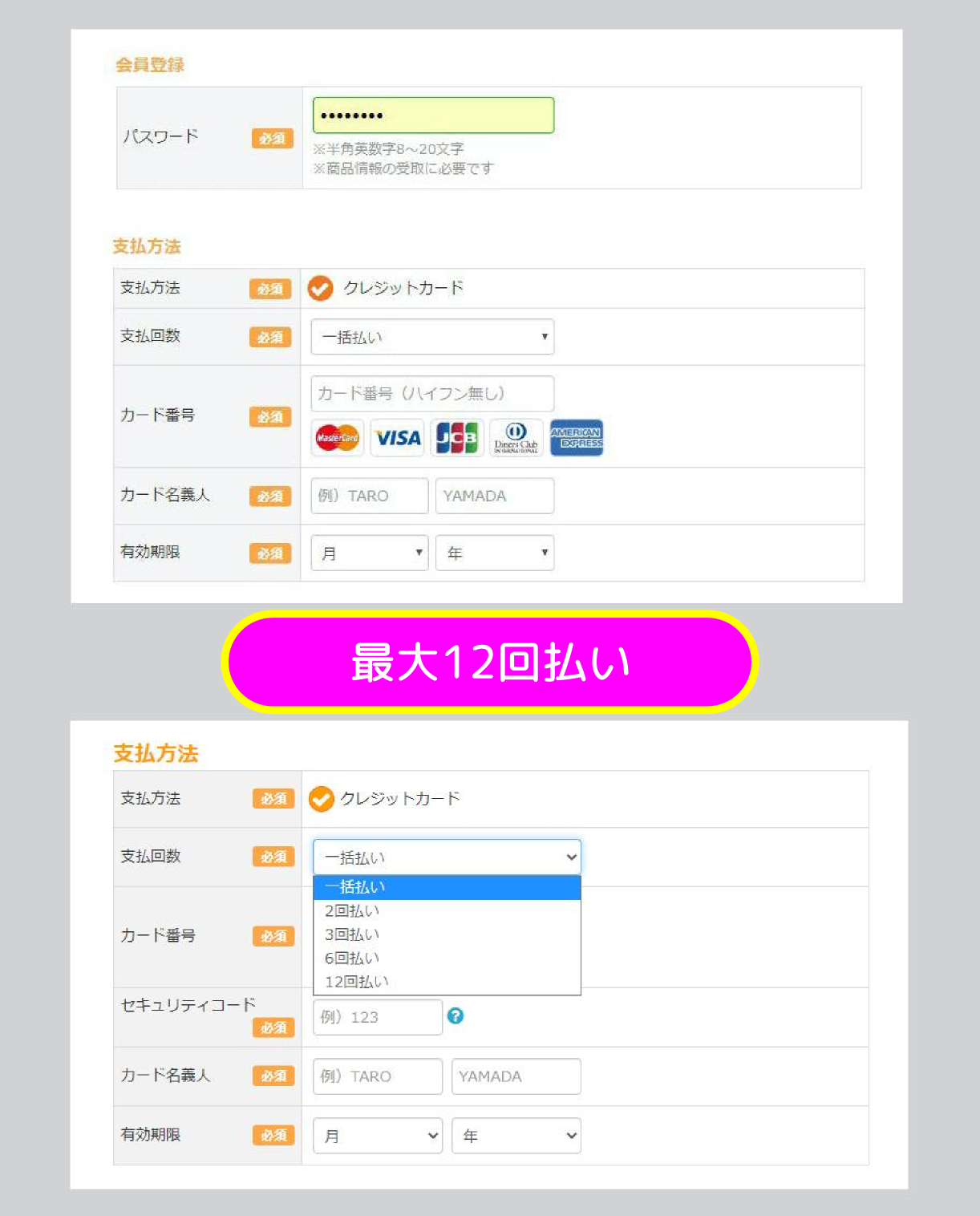 3.【200,000円】をクレジットカードで分割決済にすることが可能になりました。
