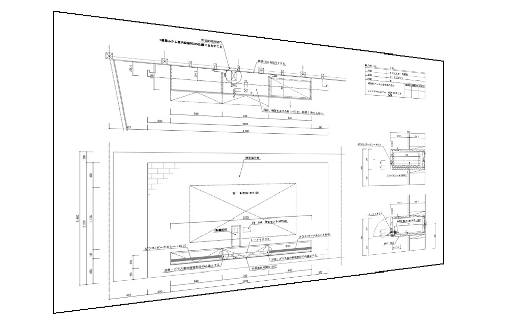 フロートテレビボードの製作の様子 Example 1 現場の様子 図面 設置完了 Example 2 製作写真 図面 Example 3 製作写真 図面 Example 4 お客様からいただいたイメージ 現場の様子 設置完了 Example 5 製作写真 図面 設置完了 Example 6 施工写真 図面 Example 7 製作写真 Example 8 製作写真 図面 お問い合わせ 価格表 価格はグレードにより22〜33万円[発送費別]となっています。